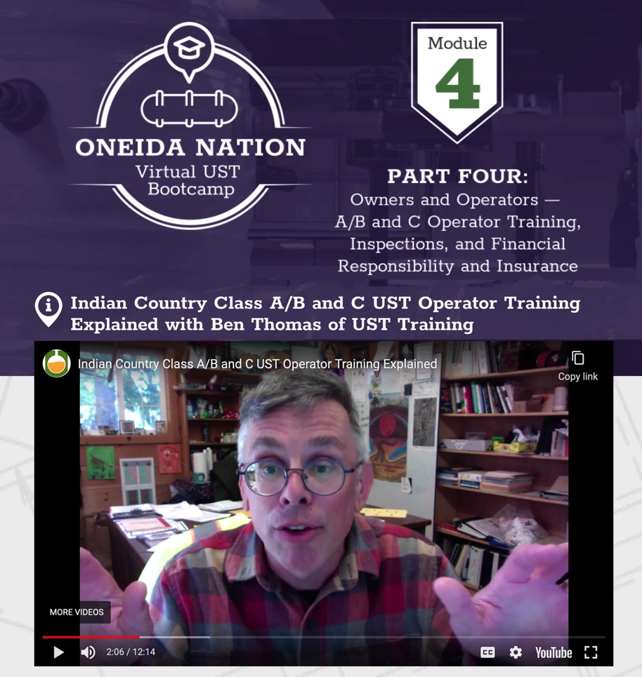 UST Training also offers self-paced Indian Country Class A/B and C UST operator training. Click here to learn more.