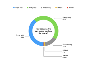 - Ease of purchase (39% said super slick, 45% said pretty easy)