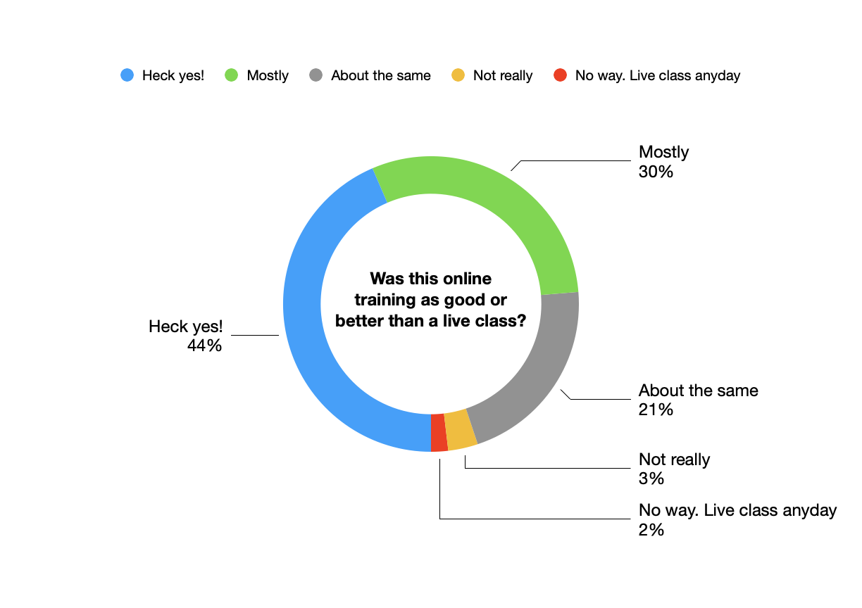 - Online as good as live (44% said heck yeah, 30% said mostly)