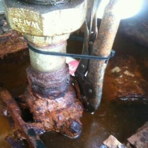 Rust, oily, water, sump full of liquid and if that's not enough, vice grips and a zip tie holding open the shear valve.