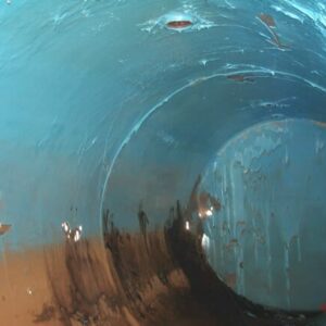 Clearly the liner company didn't line the entire tank profile as is evidenced by there being no liner from 3 o'clock to 9 o'clock. Also the jagged and drippy edges of the blue liner seen it indicate a hurried job. Liners are supposed to be applied 10 mils thickness at a time for ten times.