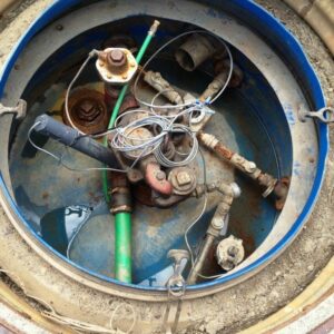 The solenoid valve (green round object at 9 o'clock above blue pipe) prevents the automatic line leak detector from looking for a 3 GPH leak from itself up to the dispenser. It can only find a leak between itself and the solenoid, all of an inch or two of product pipe. It was installed to prevent anti-siphoning (dispenser lower than ALLD) but all it's really good for is a red tag since the line downstream of the solenoid is no longer monitored for leaks.