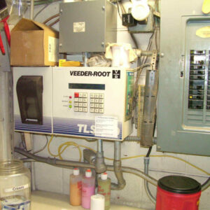 The sump sensor (gray tube between Veeder Root and electrical panel) is functioning but should be in the sump and not the back room.