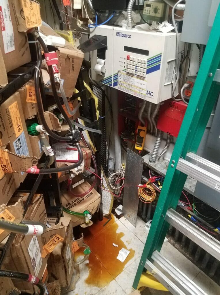 May I say everything? The panel does not have any paper in the actual printer so it is possible that the sensor reports are not printed out monthly. There is syrup for the drink machine leaking, the panel appears to be off, printouts on the floor, and on top of the panel so they probably aren’t keeping any records. It’s just a mess!