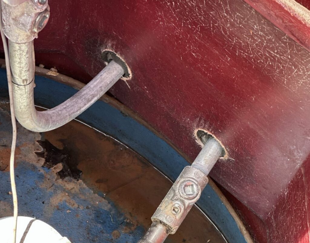 No liquid-tight seals through the FRP sump wall (“bulkhead fittings”)